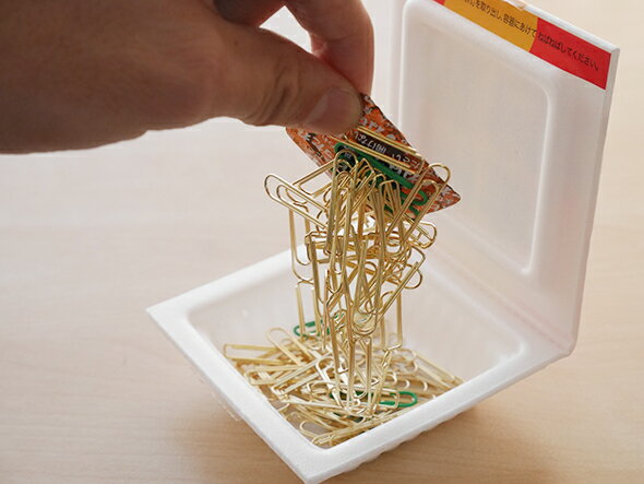 ■サイズ/ 95mm×95mm×高さ29mm ■内容/ 金色クリップ:約75個 ネギ色クリップ:5個 「ねばったれ」マグネット:1個 ■品番/ KNC-01 クリップの一覧を見る えっ、納豆? いいえ、クリップです! 人気商品、豆腐付箋「豆腐一丁」や海苔パッケージの「のりつき付箋紙」 それに続く日本の朝の食卓第三弾!! 本物の納豆容器に金色のクリップと 納豆についてくるタレそっくりの 「ねばったれ」マグネットを入れちゃいました。